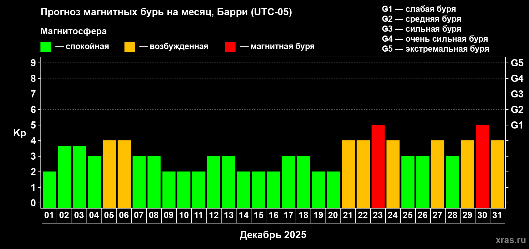 Прогноз магнитных бурь Барри — 1 декабря 2025 года