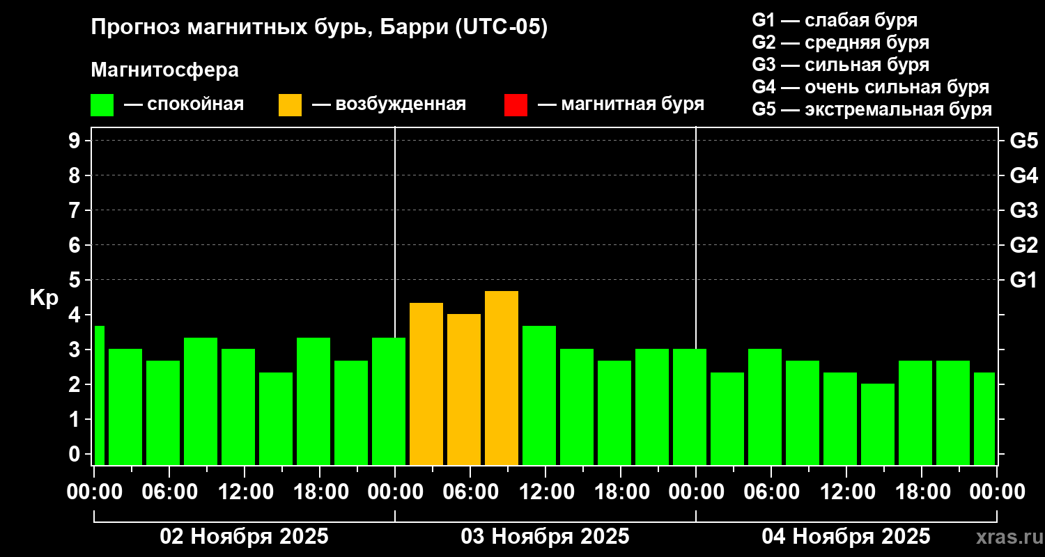 Прогноз магнитных бурь Барри — 2 ноября 2025 года