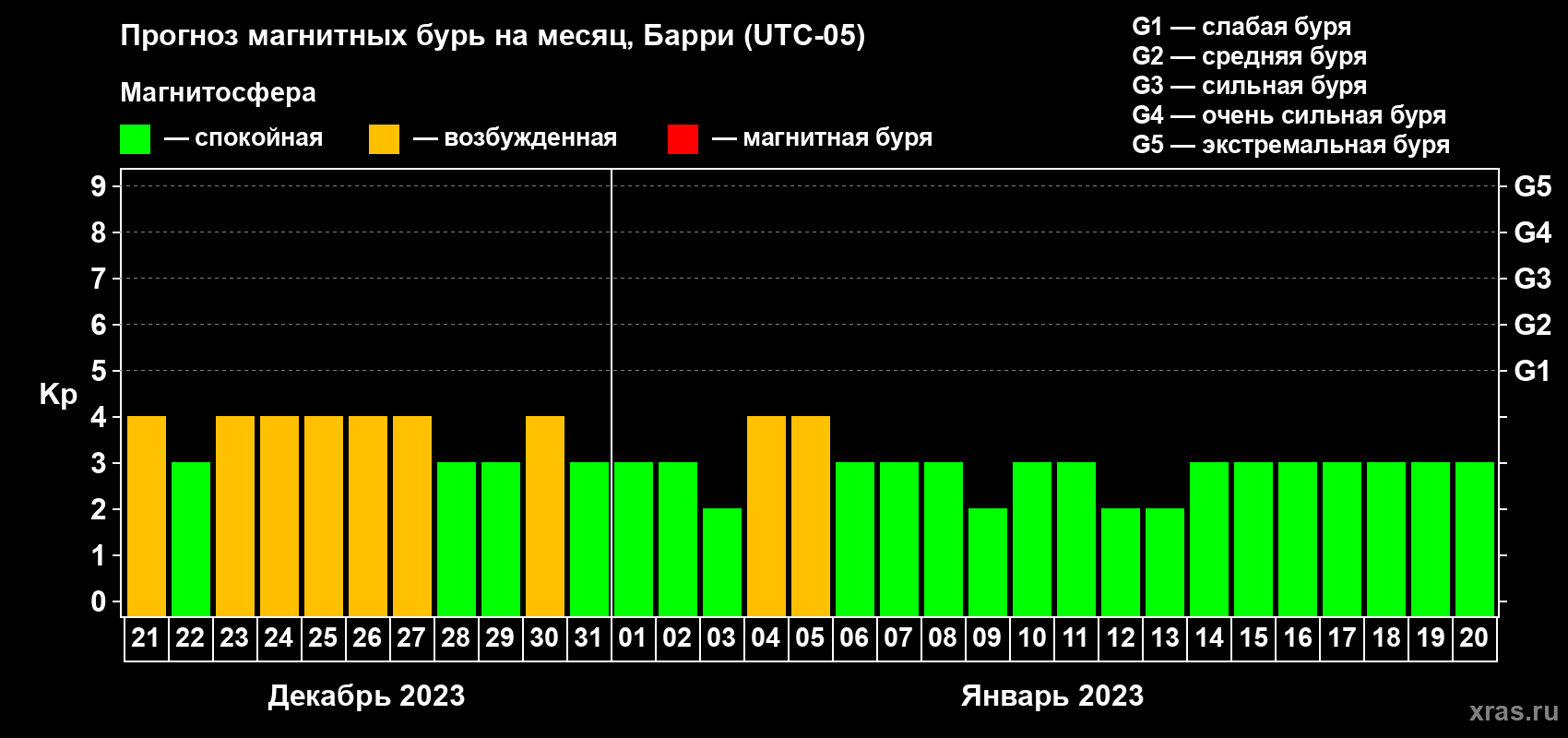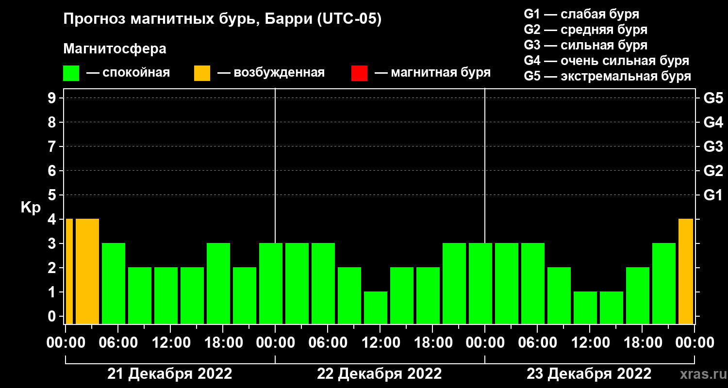 Прогноз магнитных бурь Барри на 21 декабря 2022 года