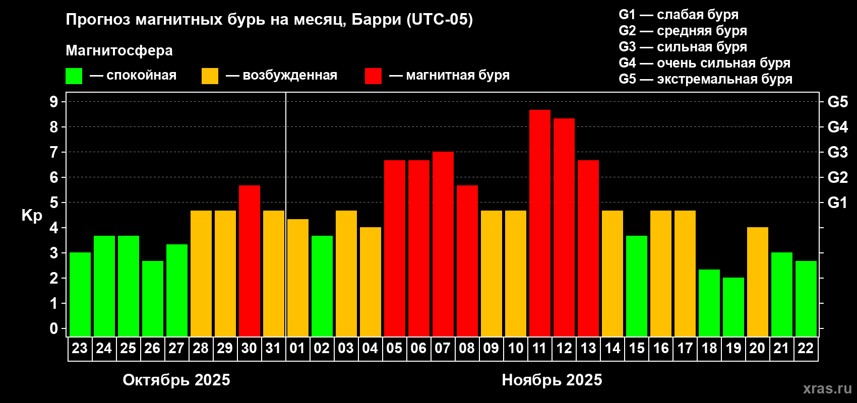 Прогноз магнитных бурь Барри — 23 октября 2025 года