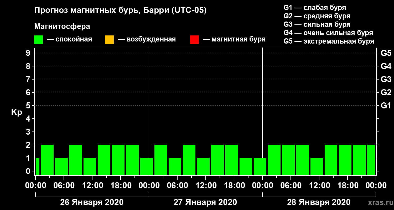 Прогноз магнитных бурь Барри на 26 января 2020 года