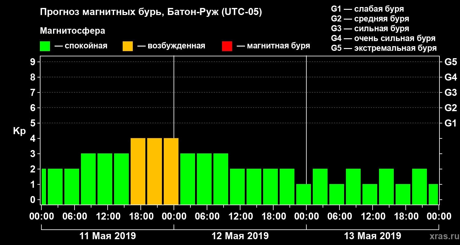 Прогноз магнитных бурь в Батон-Руже — 11 мая 2019 года