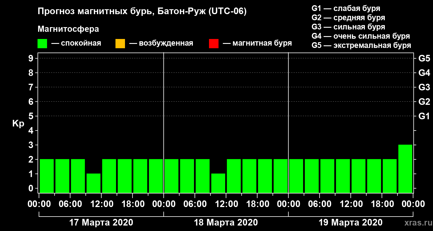 Прогноз магнитных бурь в Батон-Руже на 17 марта 2020 года