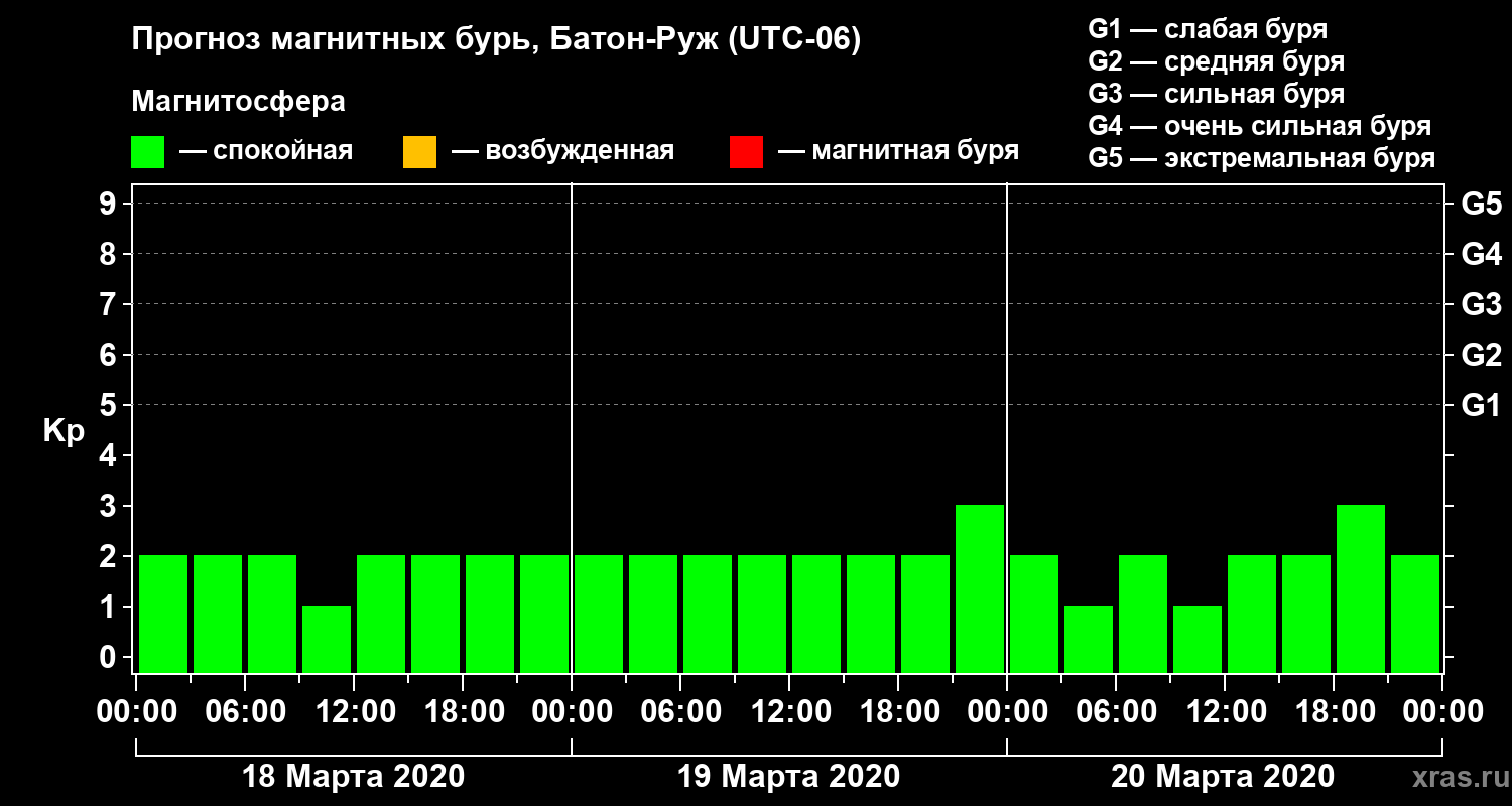 Прогноз магнитных бурь в Батон-Руже — 18 марта 2020 года