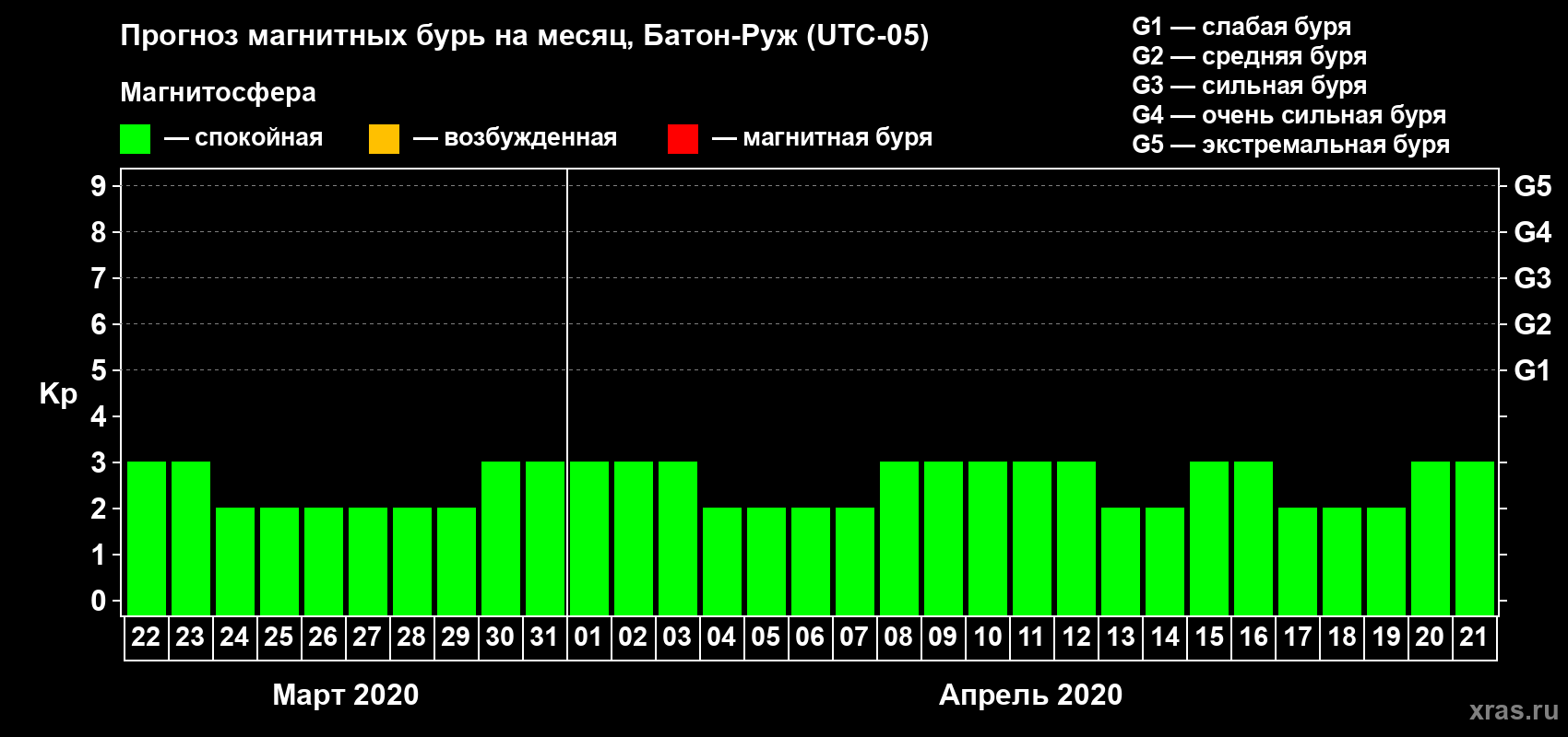 Прогноз магнитных бурь в Батон-Руже — 22 марта 2020 года