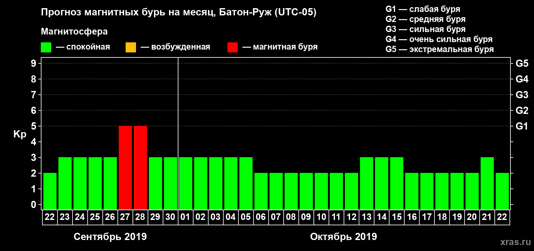 Прогноз магнитных бурь в Батон-Руже на 22 сентября 2019 года