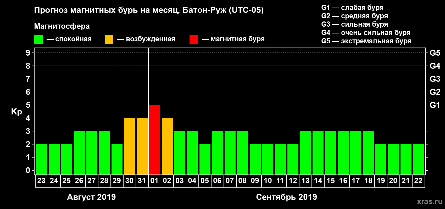 Прогноз магнитных бурь в Батон-Руже — 23 августа 2019 года