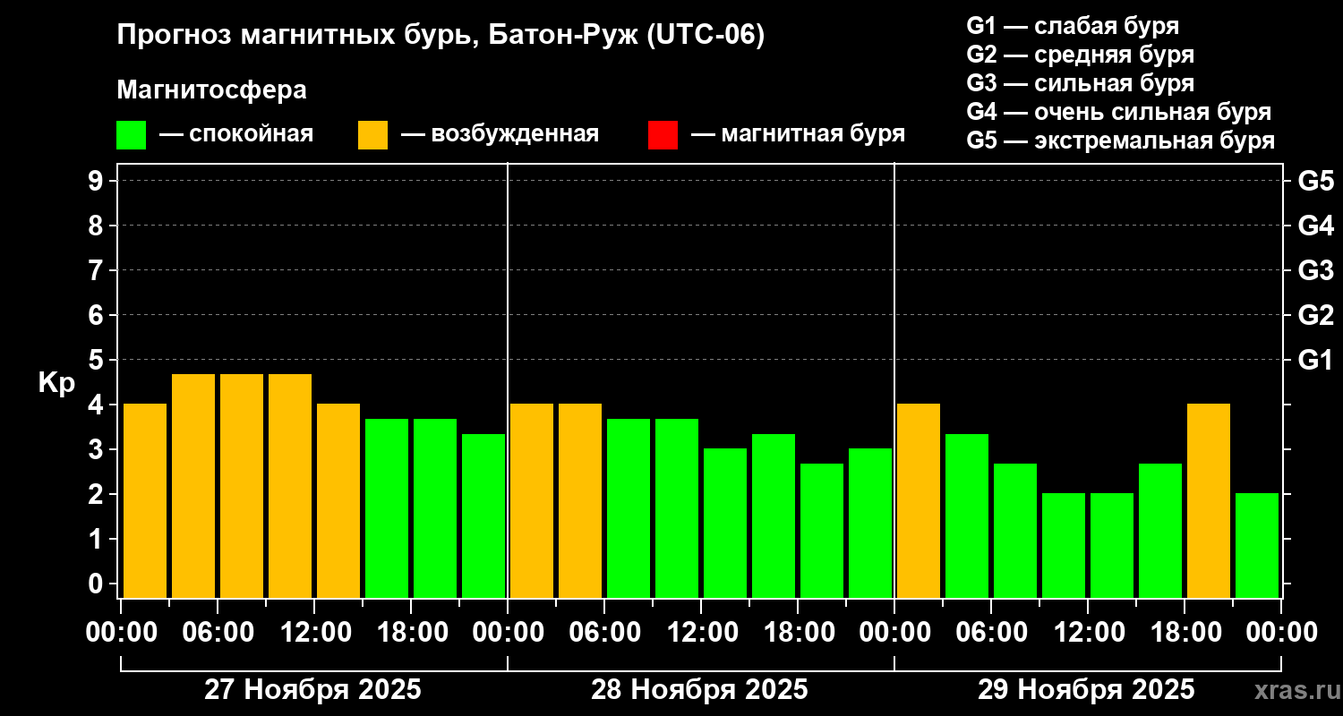 Прогноз магнитных бурь в Батон-Руже на 27 ноября 2025 года