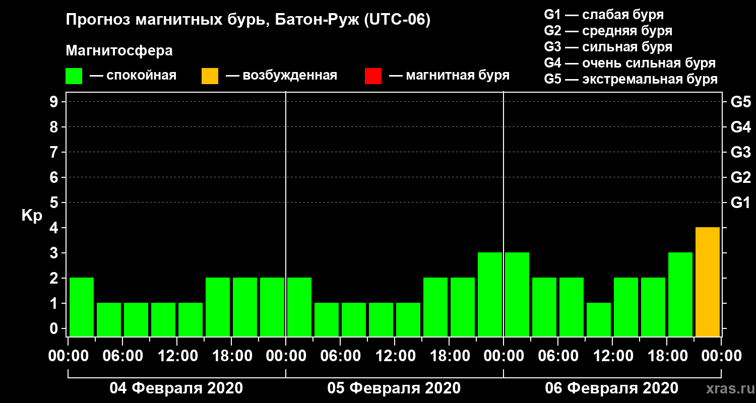 Прогноз магнитных бурь в Батон-Руже — 4 февраля 2020 года