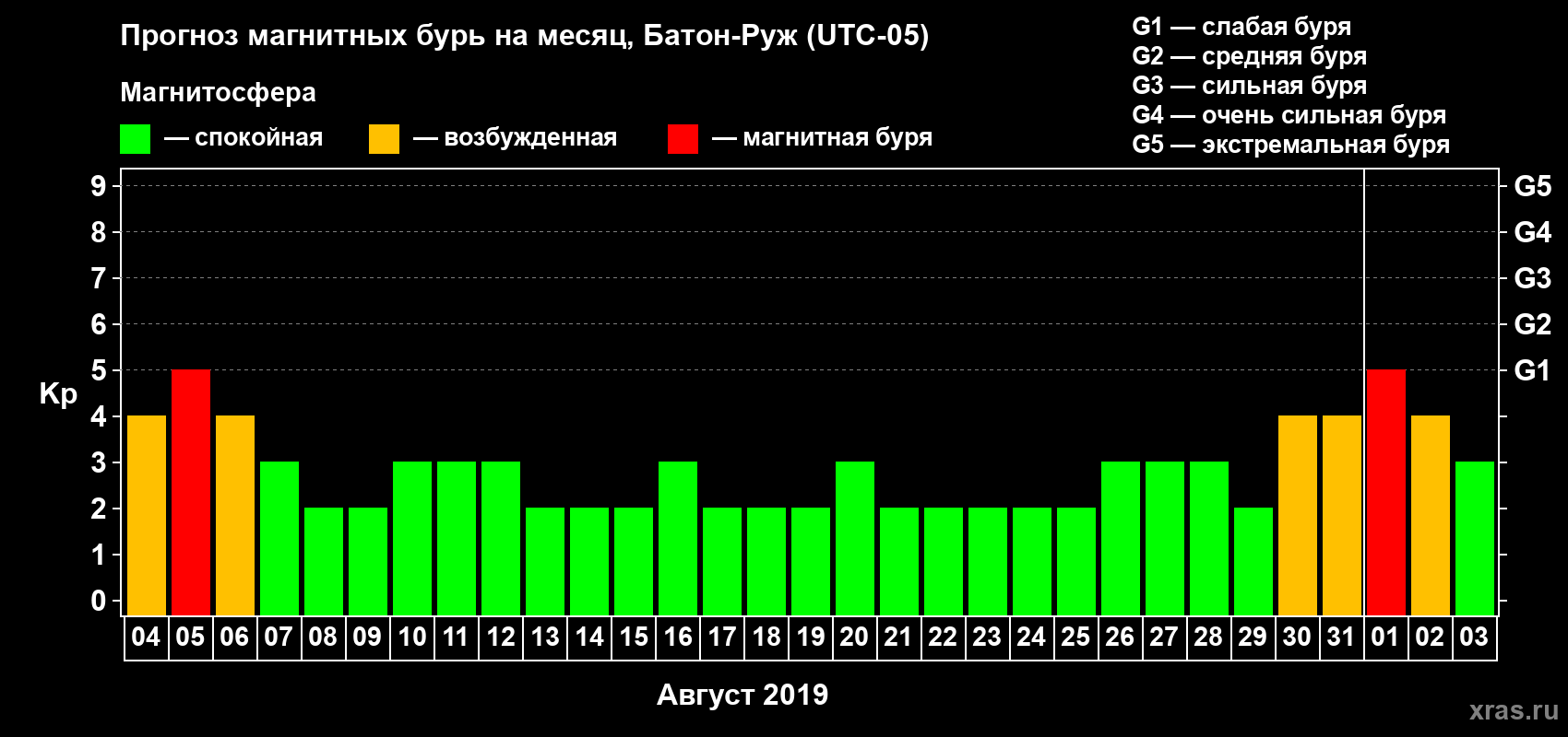Прогноз магнитных бурь в Батон-Руже — 4 августа 2019 года