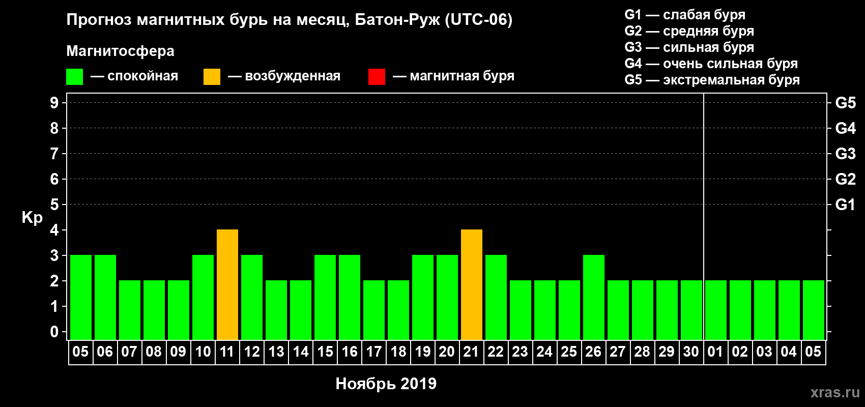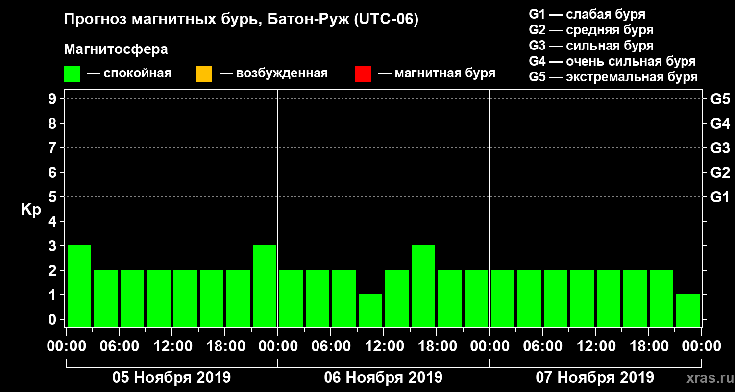 Прогноз магнитных бурь в Батон-Руже — 5 ноября 2019 года