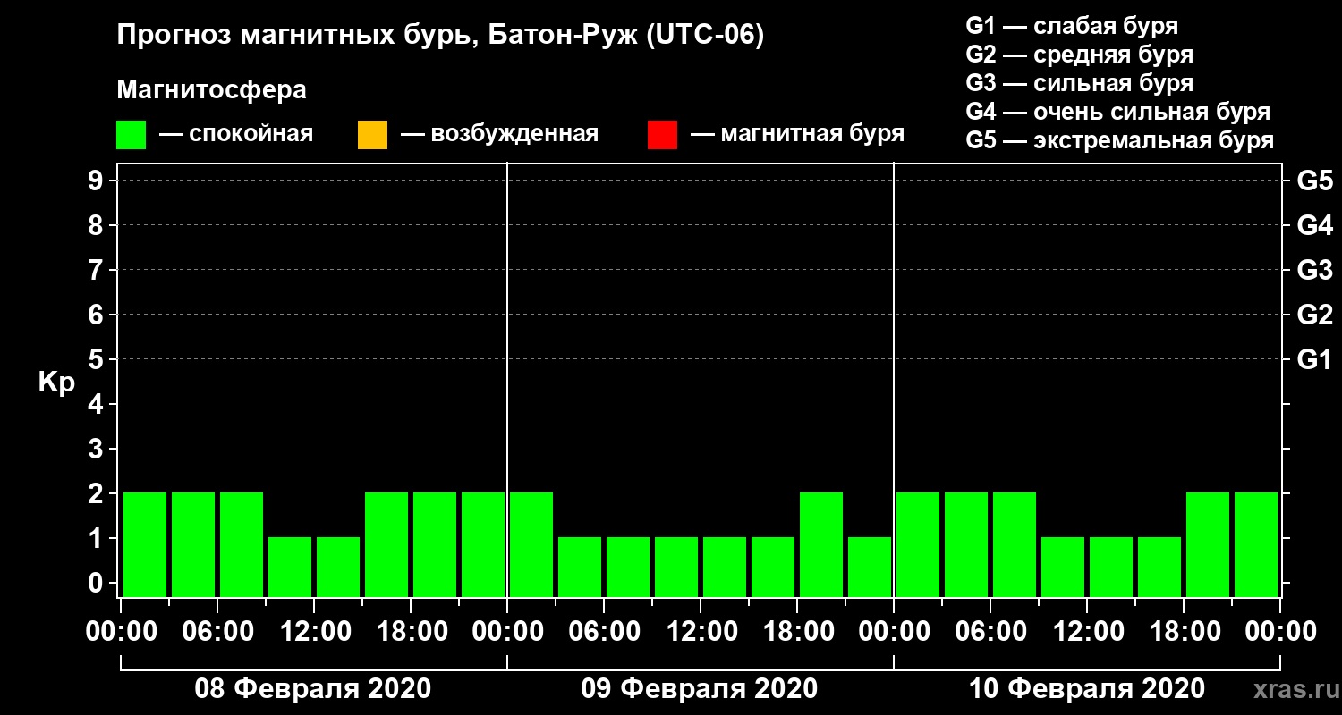 Прогноз магнитных бурь в Батон-Руже — 8 февраля 2020 года