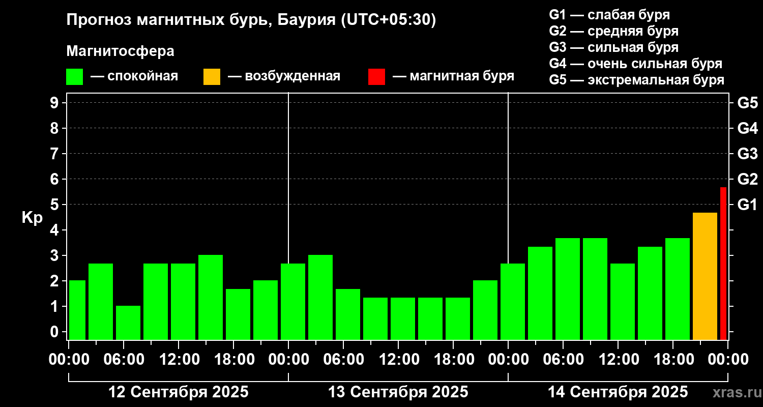 Прогноз магнитных бурь в Баурии — 12 сентября 2025 года