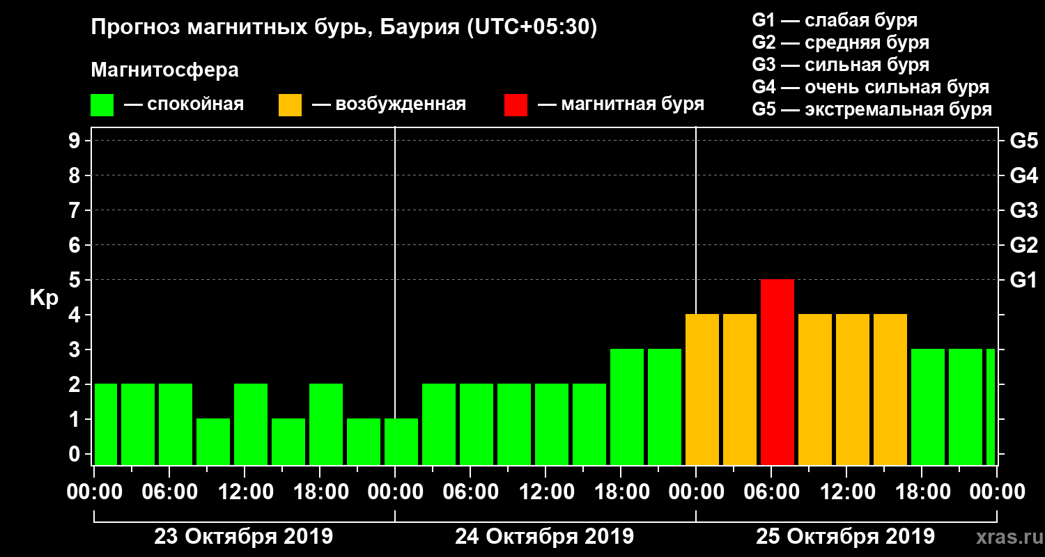 Прогноз магнитных бурь в Баурии — 23 октября 2019 года
