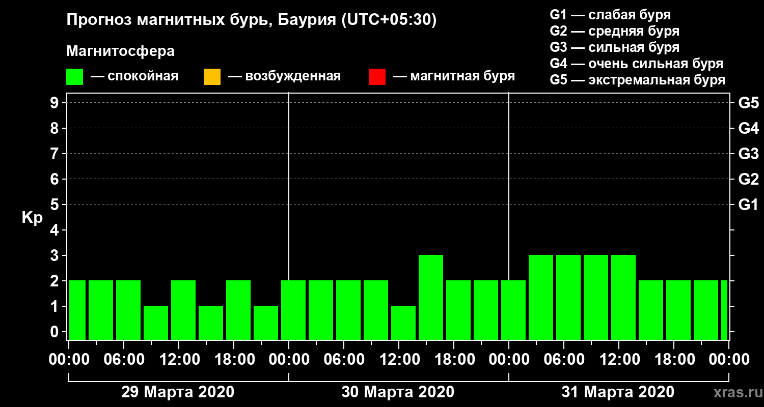 Прогноз магнитных бурь в Баурии на 29 марта 2020 года