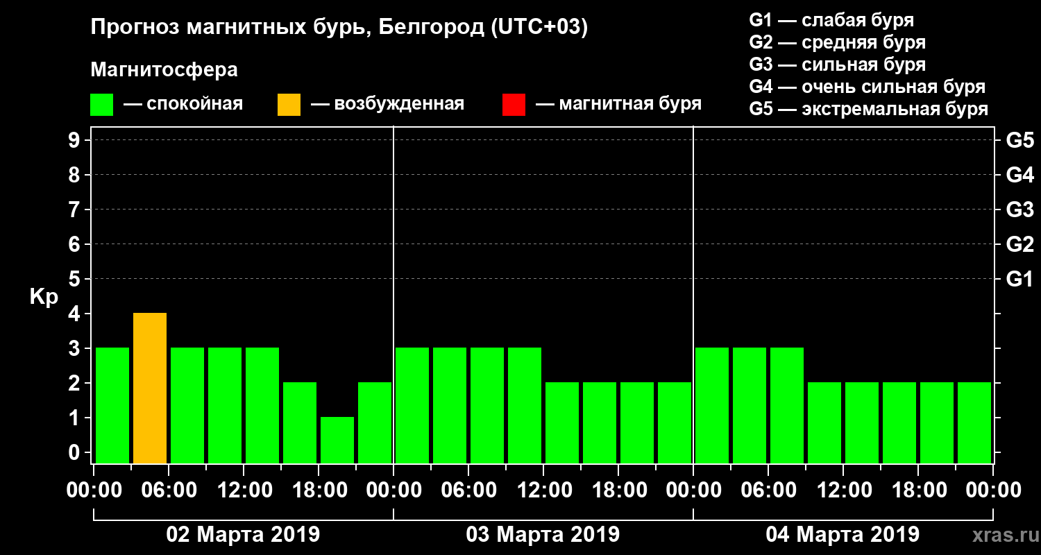 Прогноз магнитных бурь в Белгороде — 2 марта 2019 года