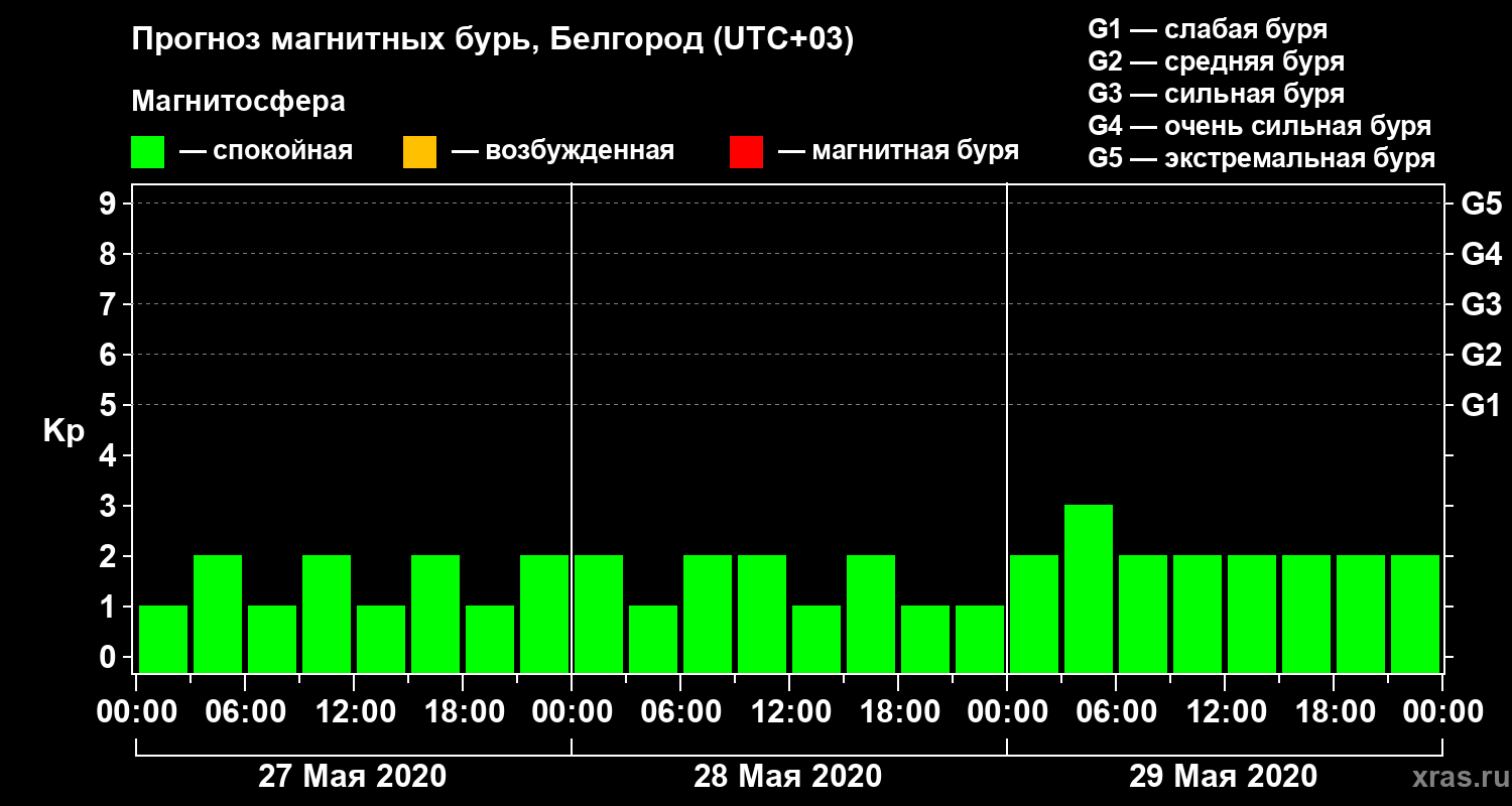 Прогноз магнитных бурь в Белгороде на 27 мая 2020 года