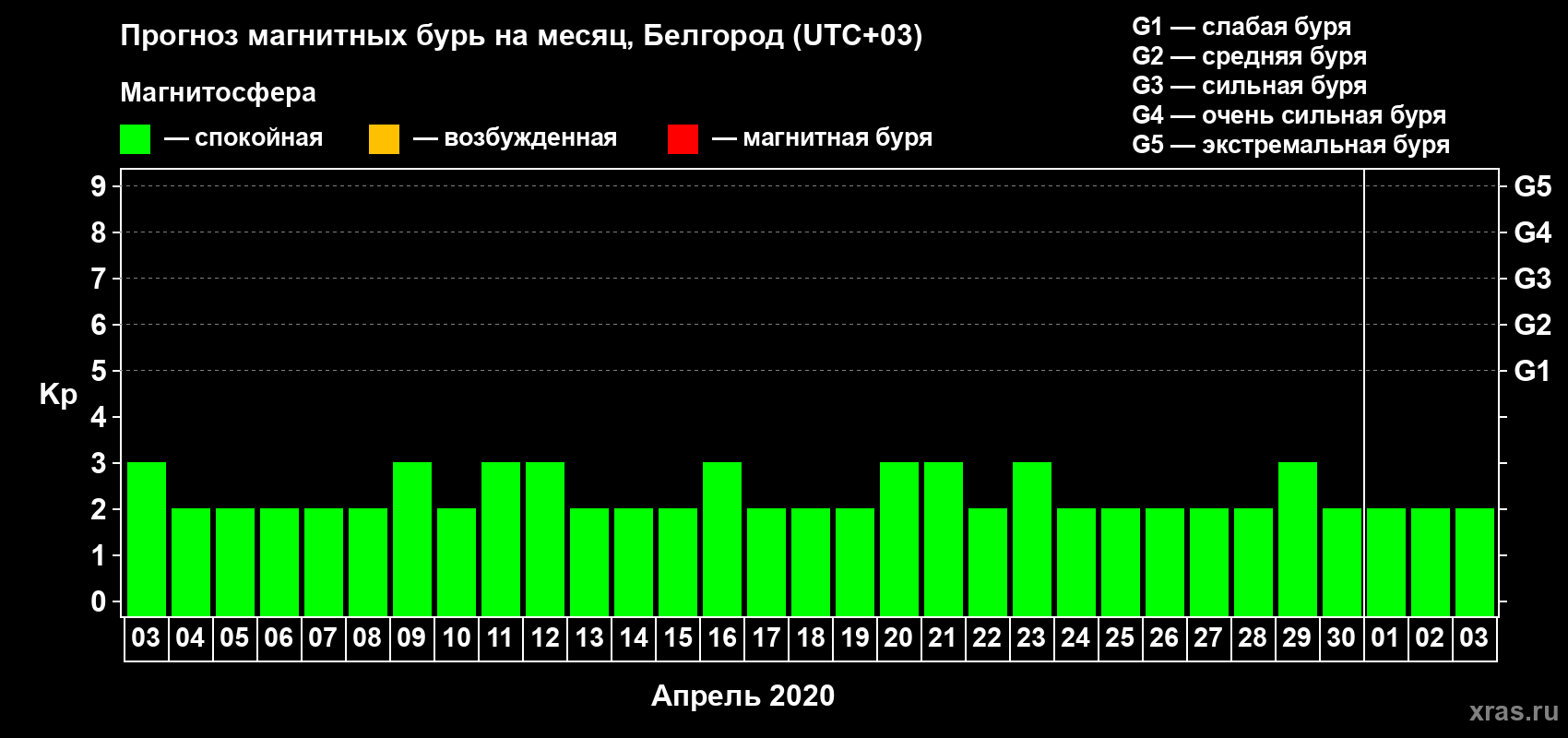 Прогноз магнитных бурь в Белгороде — 3 апреля 2020 года