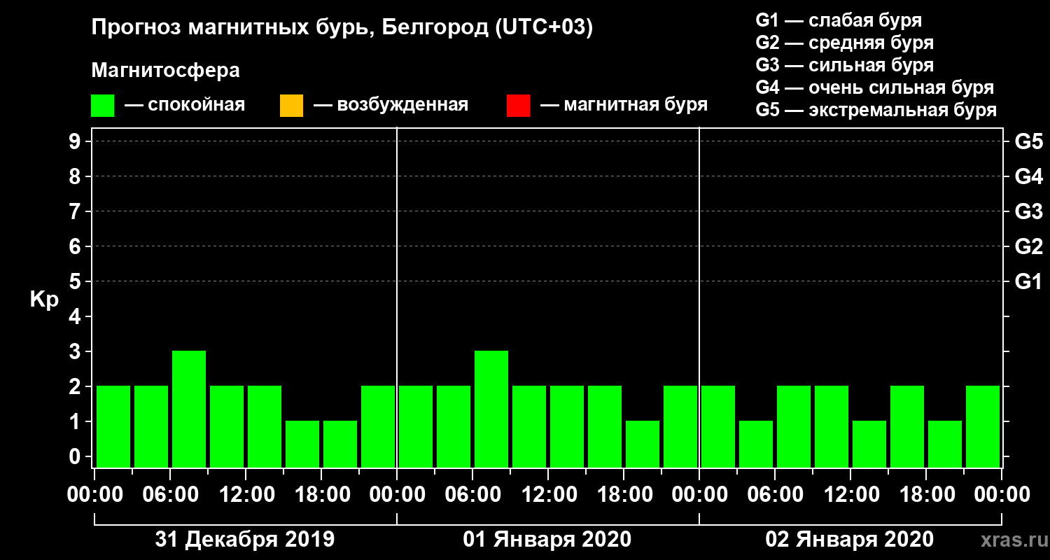Прогноз магнитных бурь в Белгороде — 31 декабря 2019 года