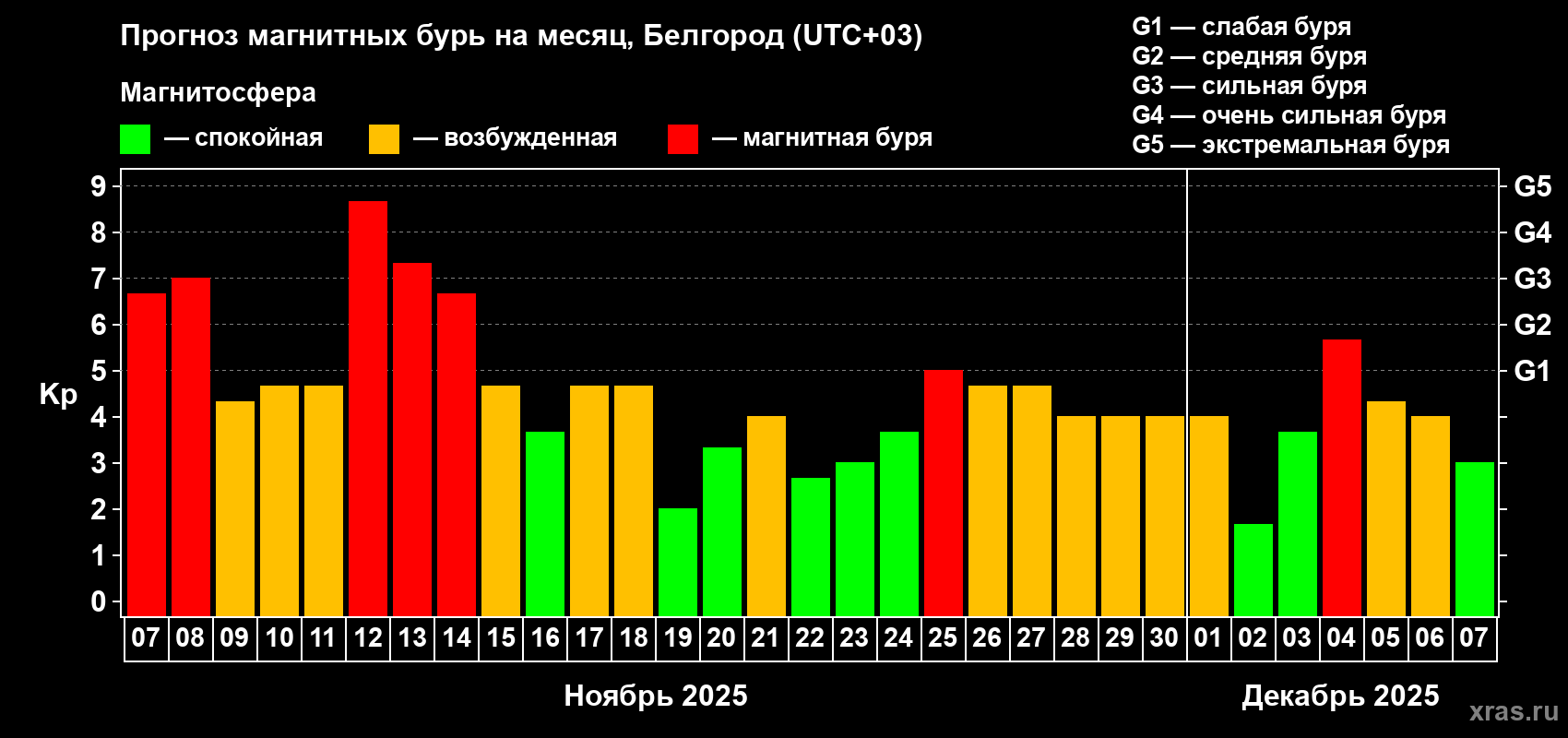 Прогноз магнитных бурь в Белгороде — 7 ноября 2025 года