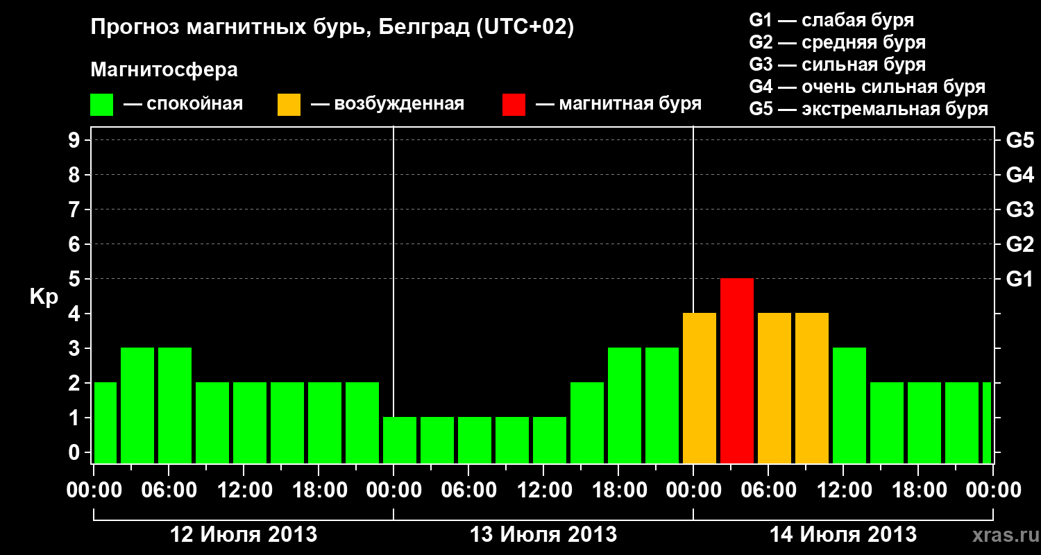Прогноз магнитных бурь в Белграде — 12 июля 2013 года