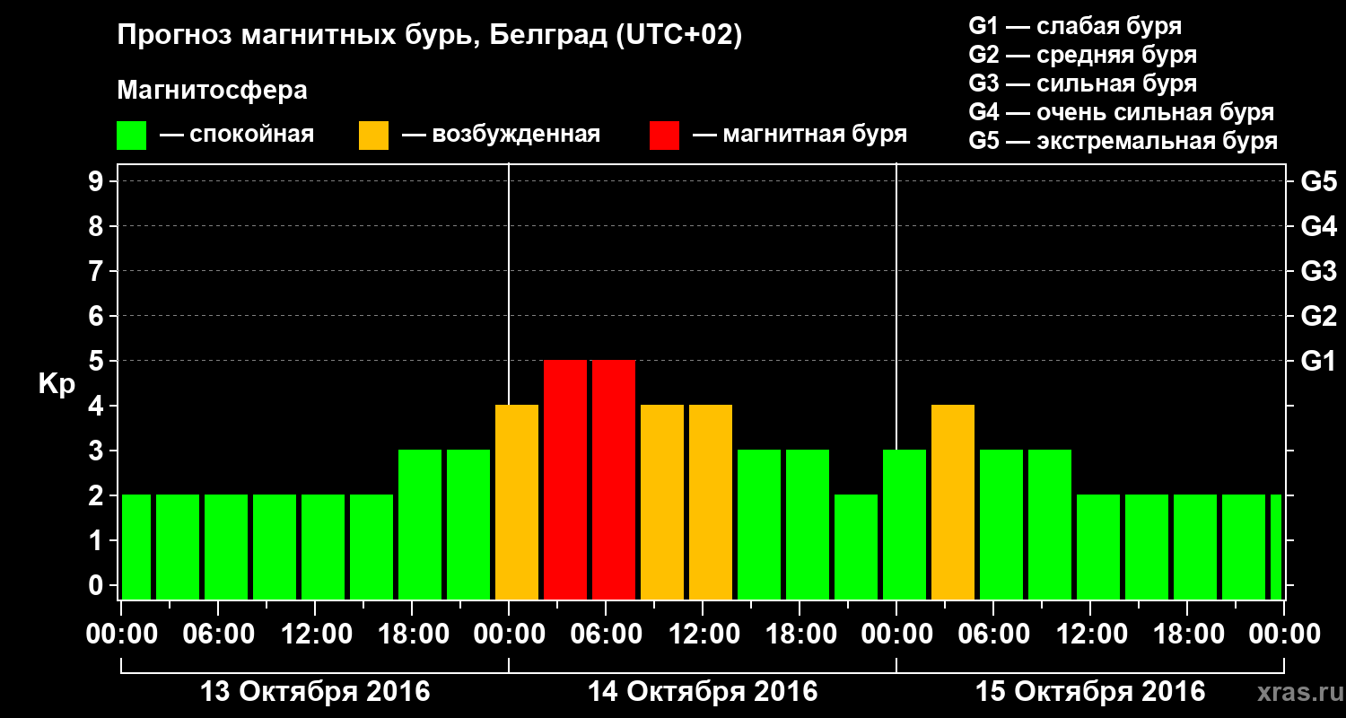 Прогноз магнитных бурь в Белграде — 13 октября 2016 года