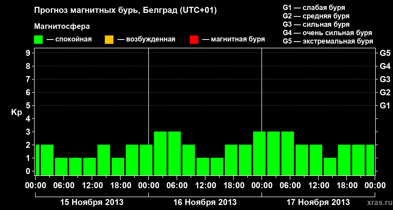 Прогноз магнитных бурь в Белграде — 15 ноября 2013 года