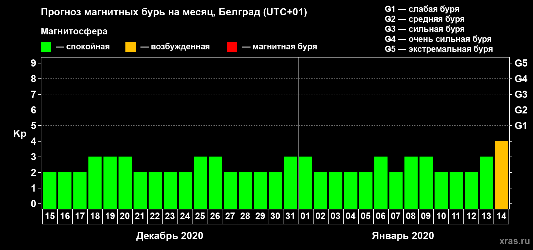 Прогноз магнитных бурь в Белграде — 15 декабря 2019 года