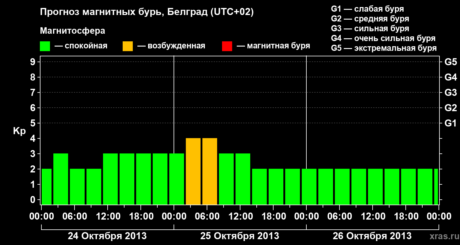 Прогноз магнитных бурь в Белграде — 24 октября 2013 года