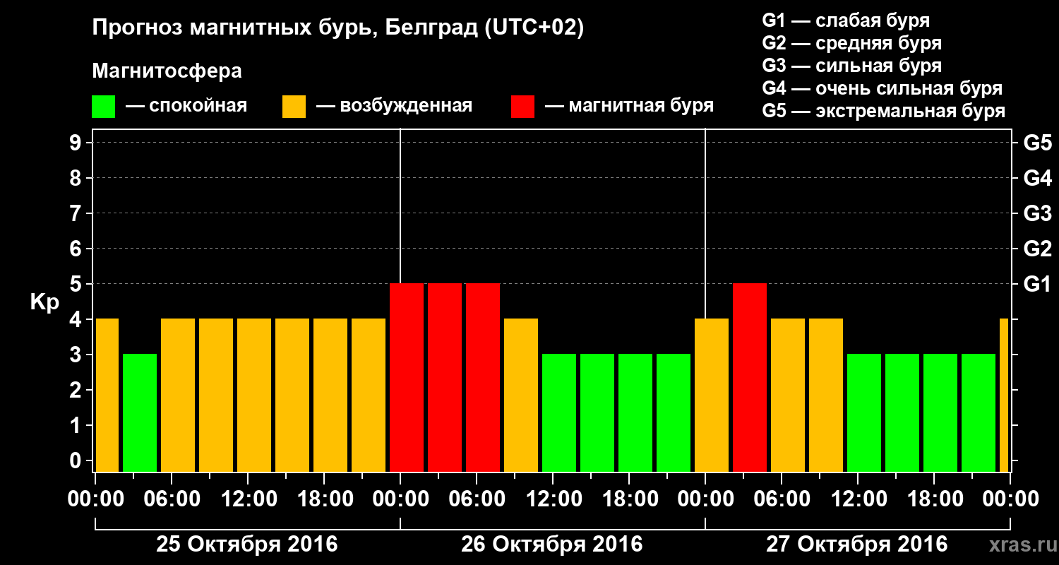 Прогноз магнитных бурь в Белграде — 25 октября 2016 года