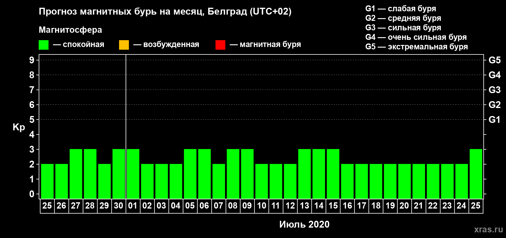 Прогноз магнитных бурь в Белграде — 25 июня 2020 года