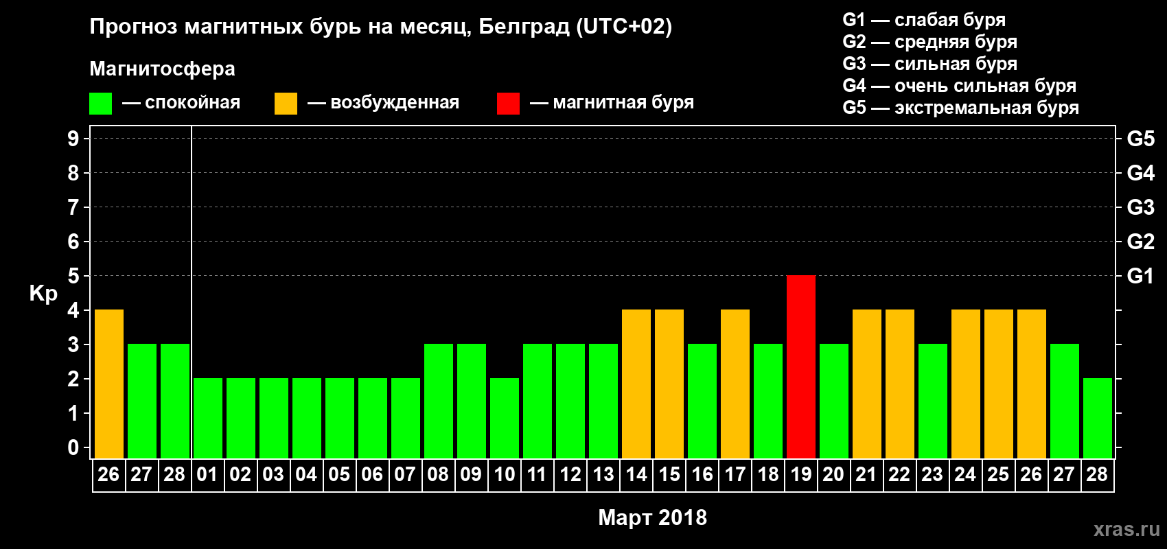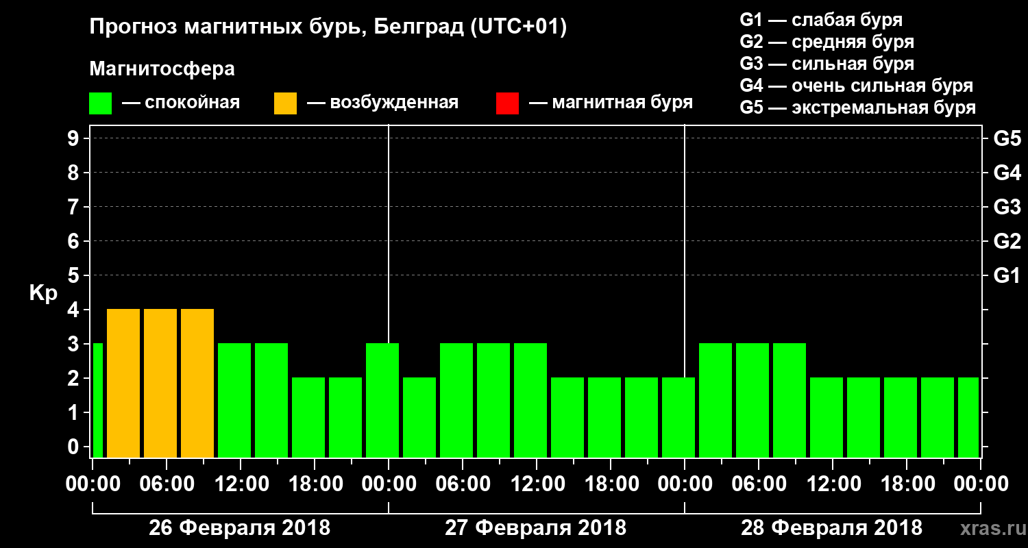 Прогноз магнитных бурь в Белграде — 26 февраля 2018 года