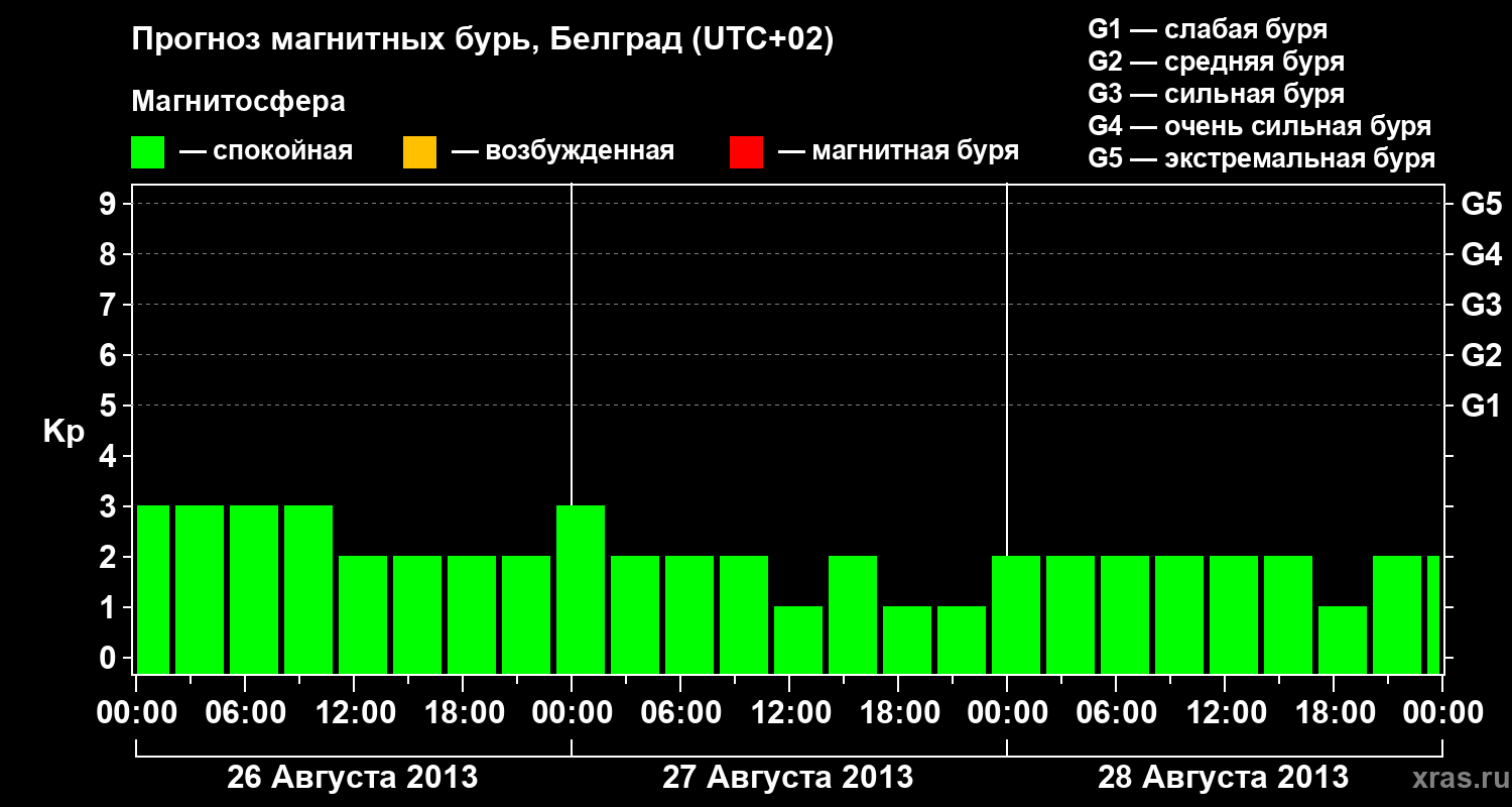 Прогноз магнитных бурь в Белграде — 26 августа 2013 года