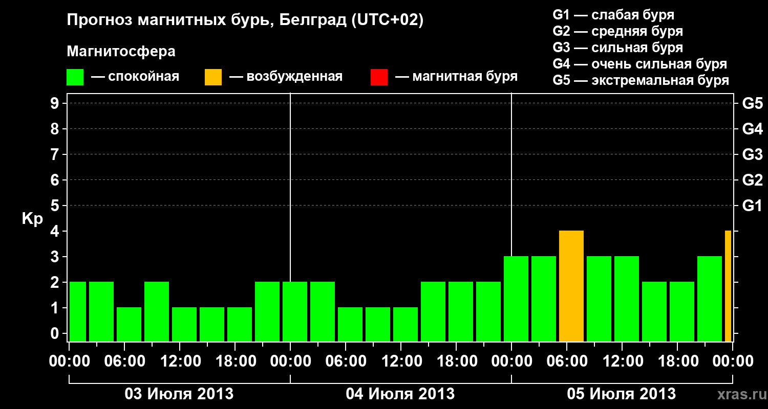 Прогноз магнитных бурь в Белграде — 3 июля 2013 года
