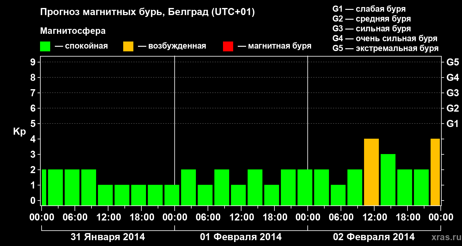 Прогноз магнитных бурь в Белграде — 31 января 2014 года