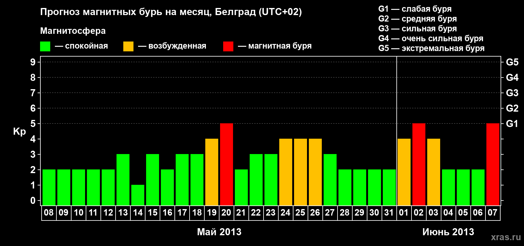 Прогноз магнитных бурь в Белграде — 8 мая 2013 года