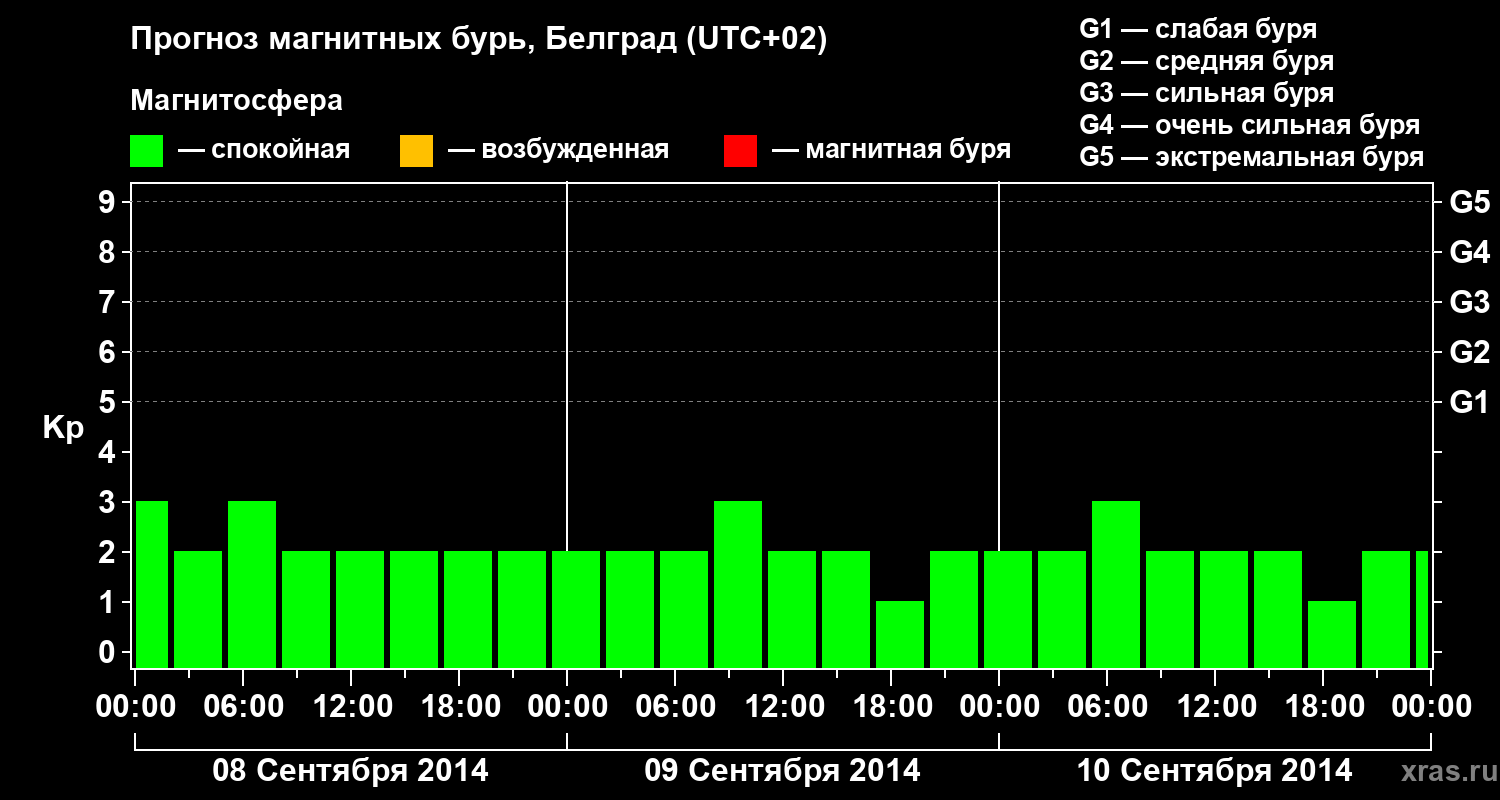 Прогноз магнитных бурь в Белграде — 8 сентября 2014 года