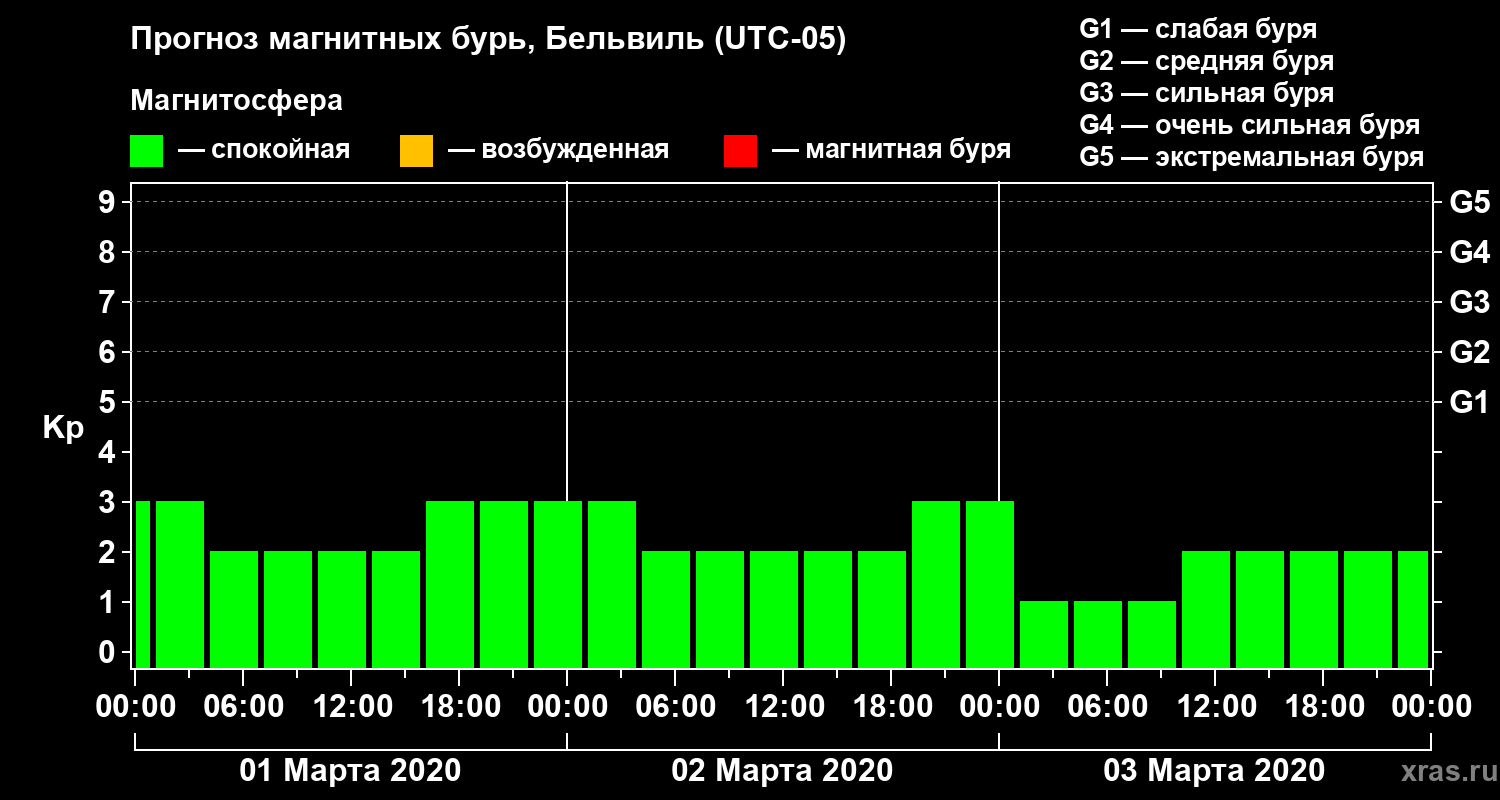 Прогноз магнитных бурь в Бельвиле — 1 марта 2020 года