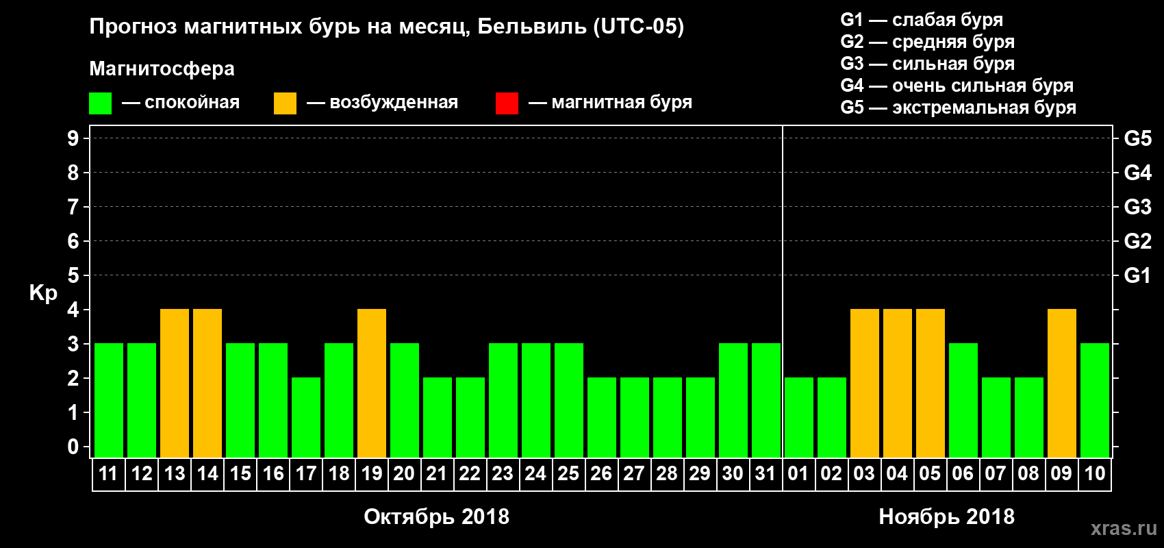 Прогноз магнитных бурь в Бельвиле — 11 октября 2018 года