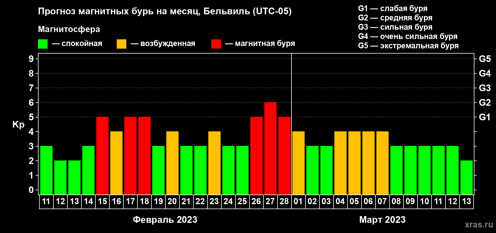 Прогноз магнитных бурь в Бельвиле — 11 февраля 2023 года