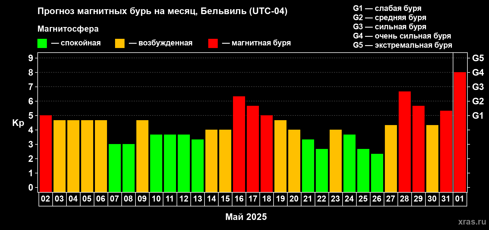 Прогноз магнитных бурь в Бельвиле — 2 мая 2025 года