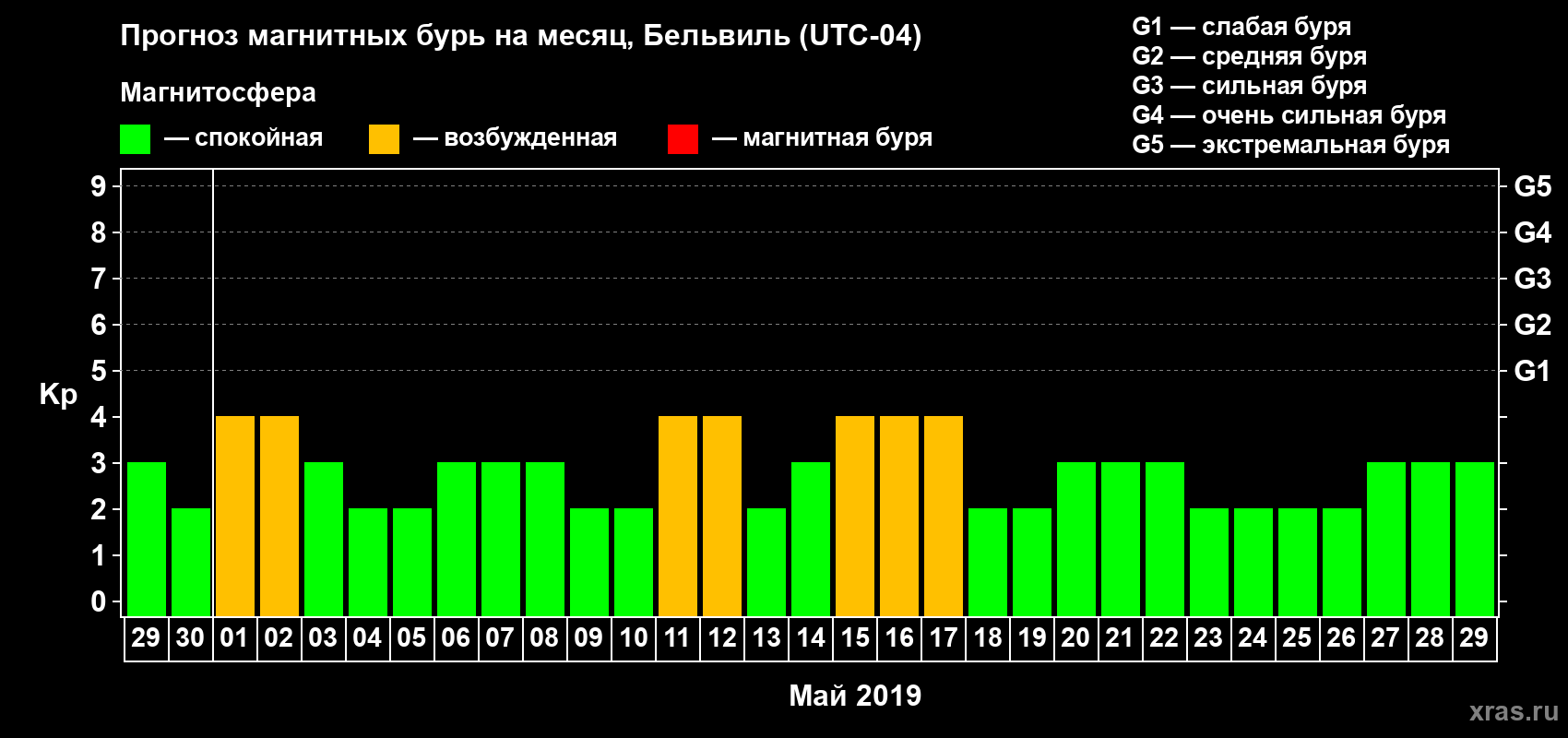 Прогноз магнитных бурь в Бельвиле — 29 апреля 2019 года