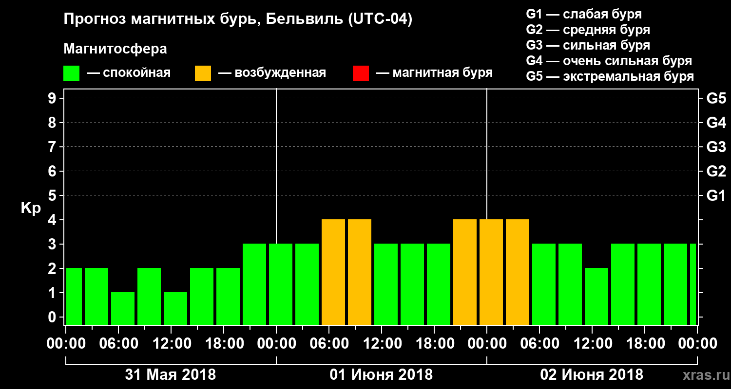 Прогноз магнитных бурь в Бельвиле — 31 мая 2018 года
