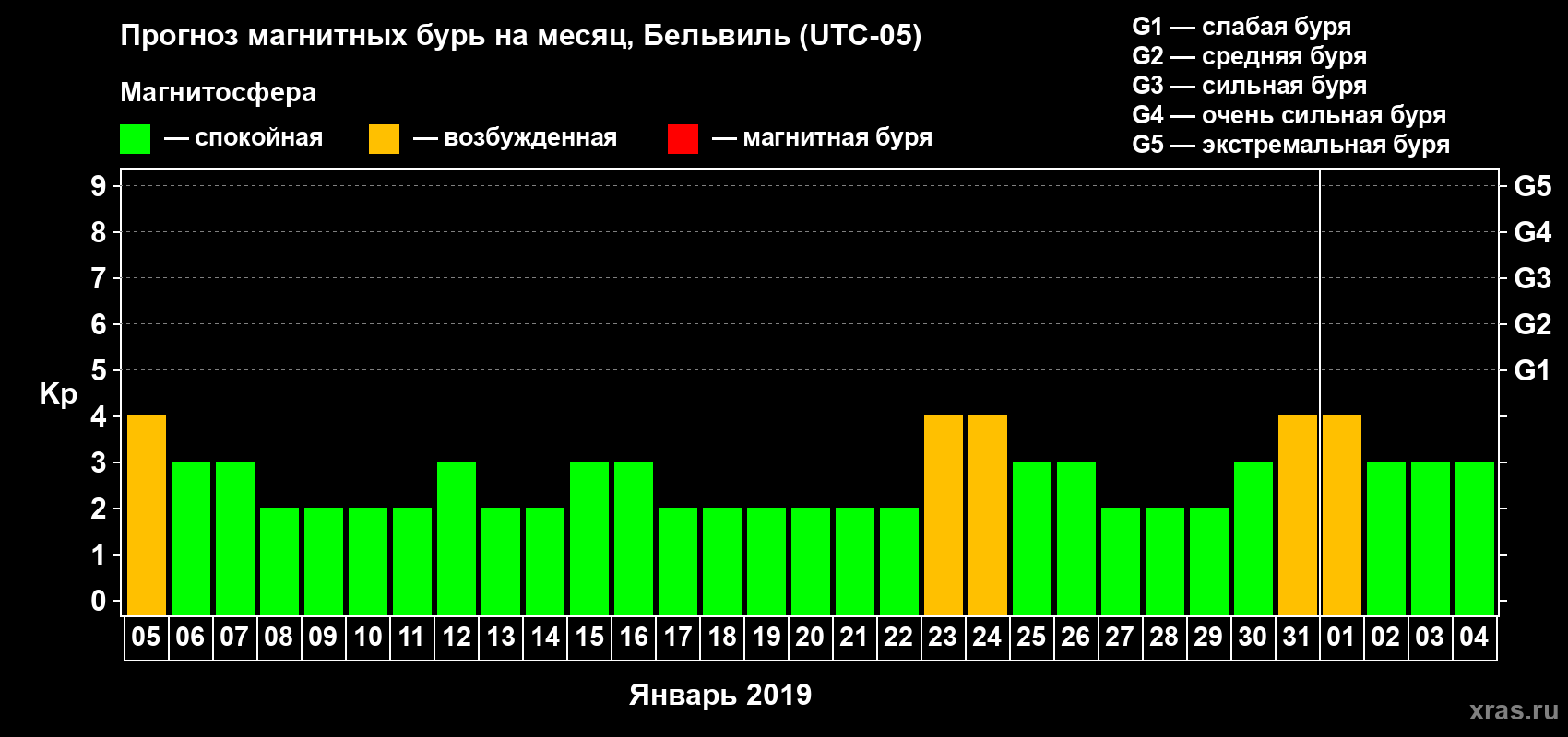 Прогноз магнитных бурь в Бельвиле — 5 января 2019 года