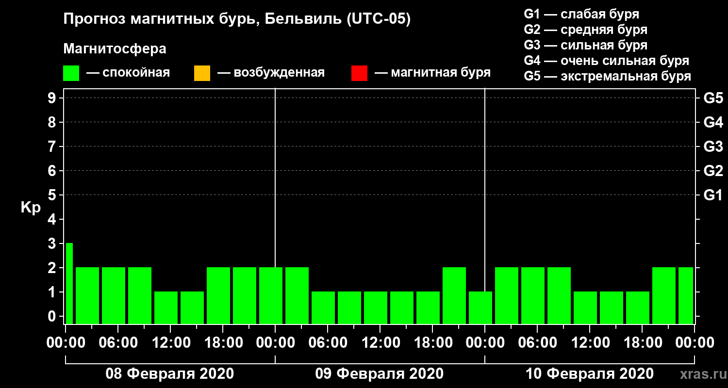 Прогноз магнитных бурь в Бельвиле — 8 февраля 2020 года