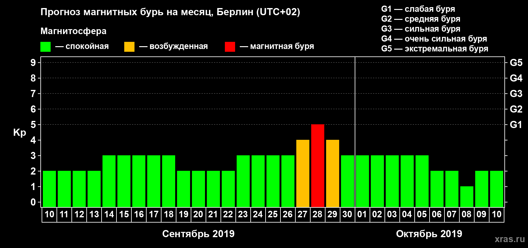 Прогноз магнитных бурь в Берлине — 10 сентября 2019 года