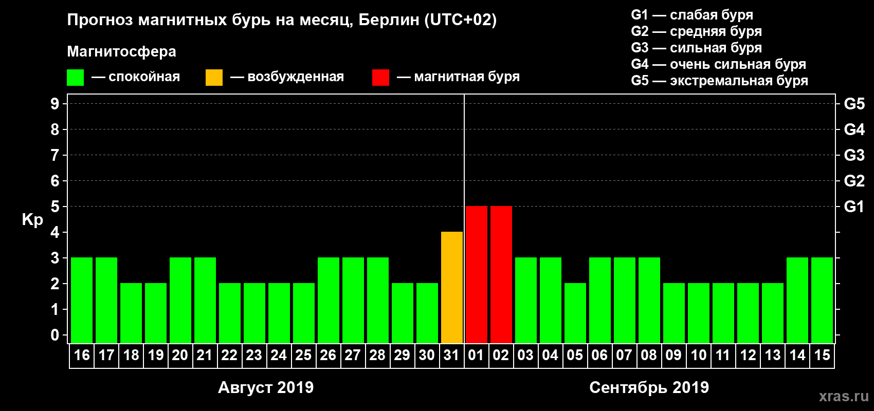 Прогноз магнитных бурь в Берлине — 16 августа 2019 года