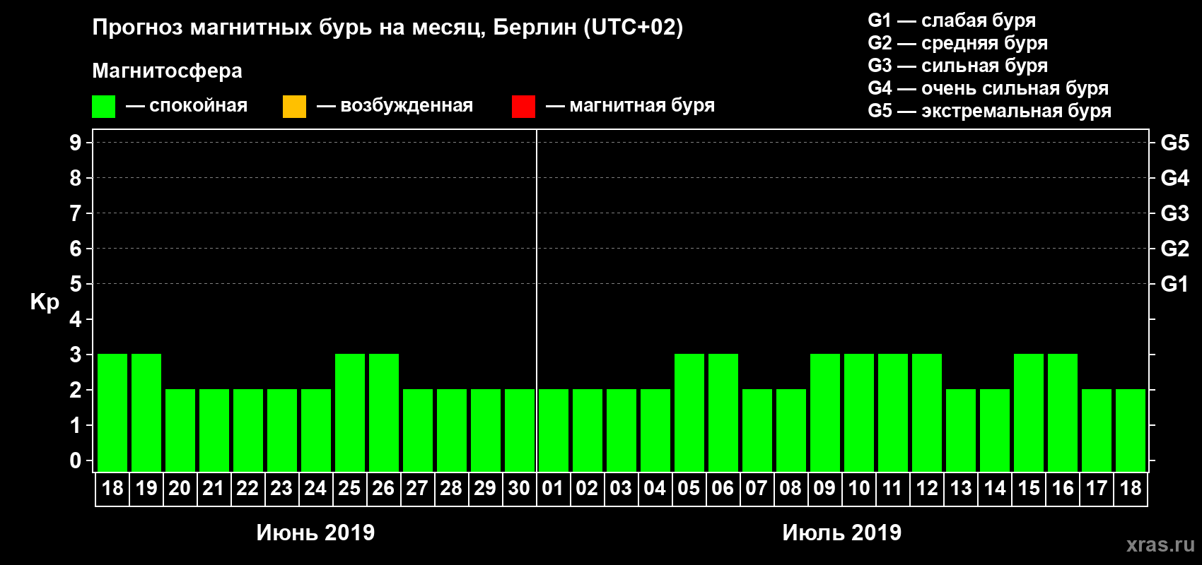 Прогноз магнитных бурь в Берлине — 18 июня 2019 года