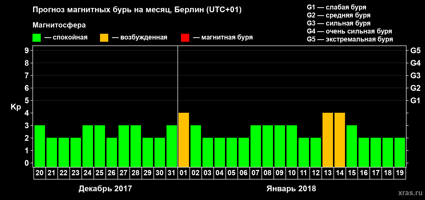 Прогноз магнитных бурь в Берлине — 20 декабря 2017 года
