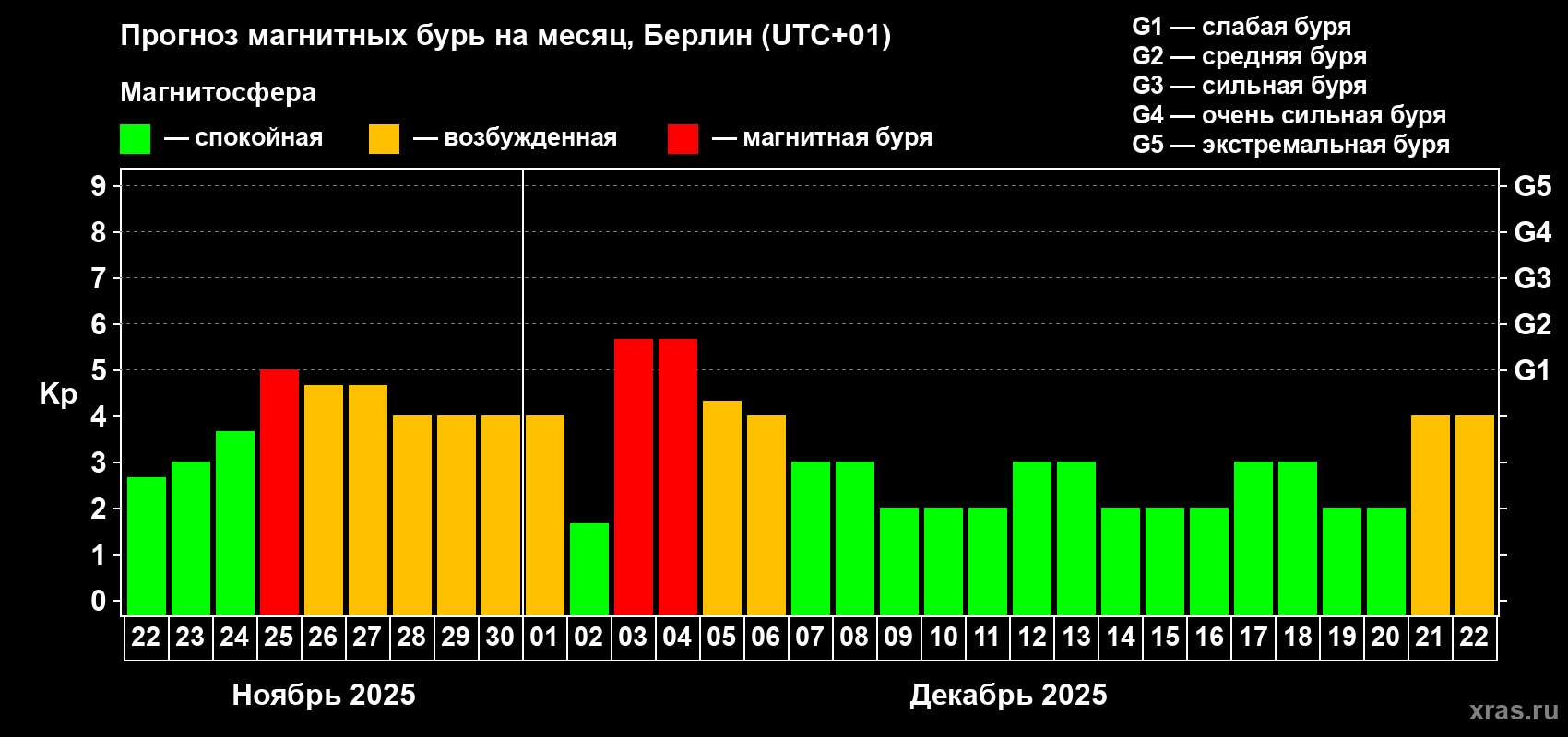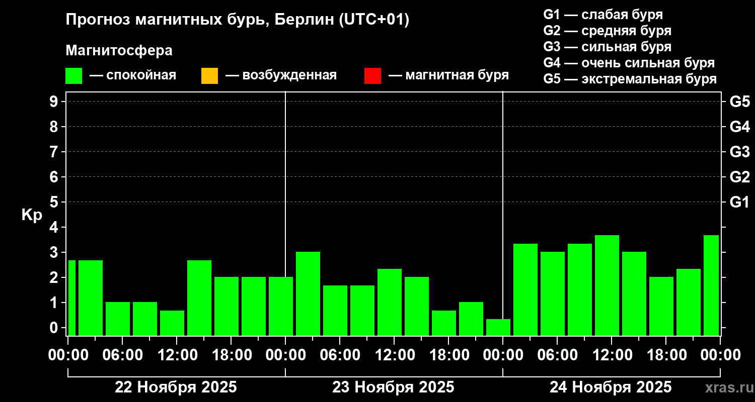 Прогноз магнитных бурь в Берлине — 22 ноября 2025 года